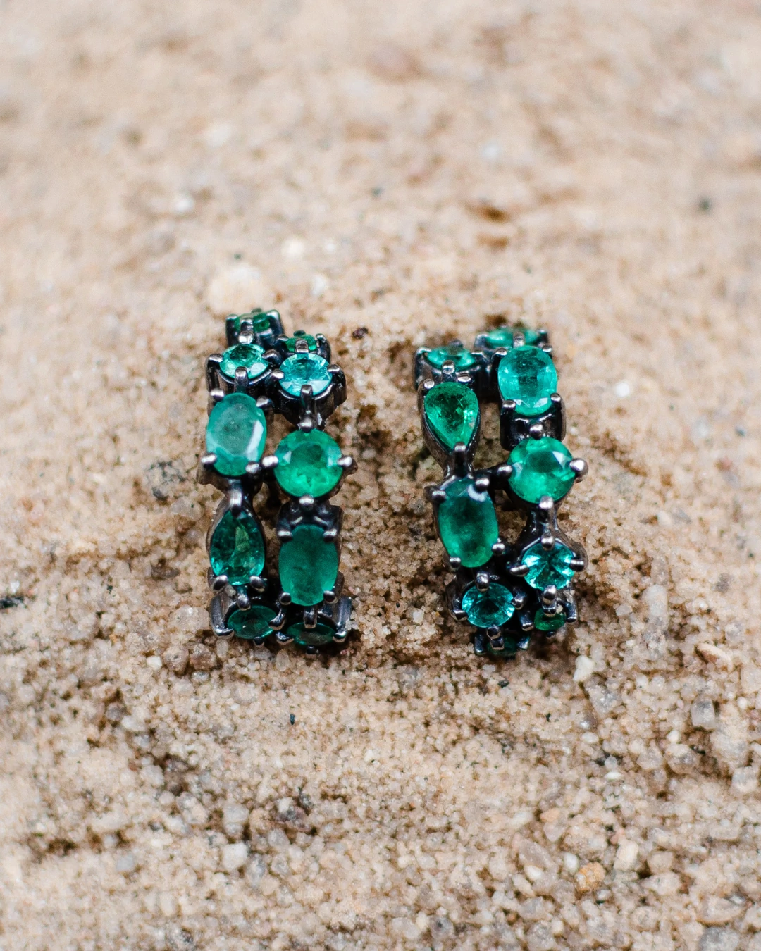 Brinco Ouro 18K com Esmeralda, Rubi e Brilhantes - Conhaque
